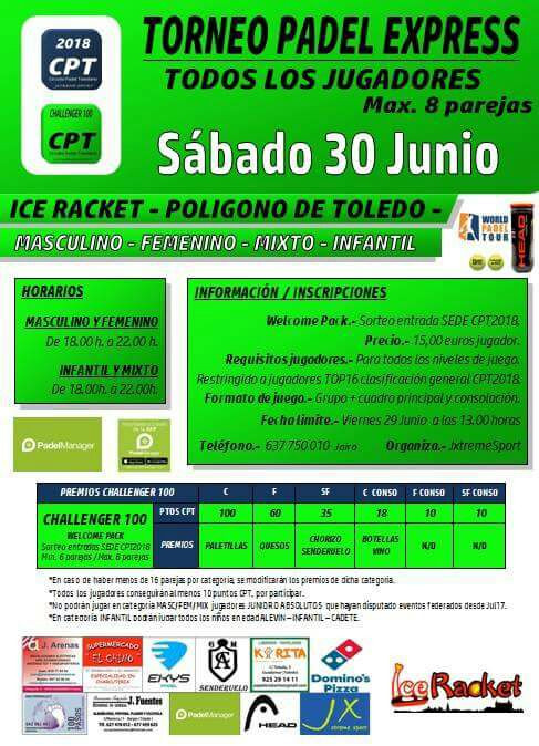 CHALLENGER ICE RACKET - TORNEO PADEL EXPRESS MAX.8 PAREJAS