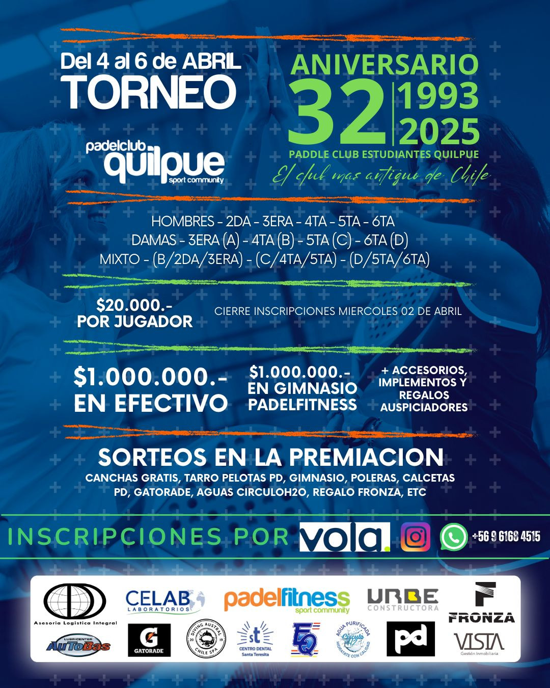TORNEO 32 ANIVERSARIO PADDLE CLUB ESTUDIANTES QUILPUE - Vola